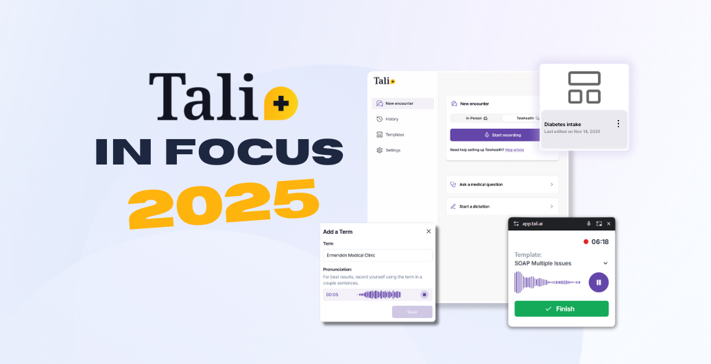Tali is the only US-built AI scribe designed for EHR workflows - trusted for accuracy, security, and support.